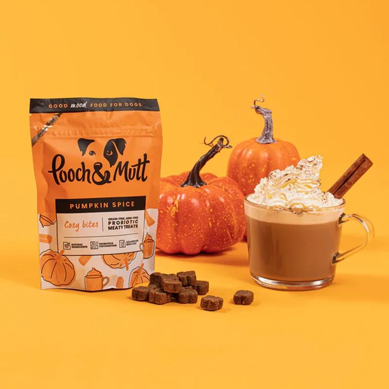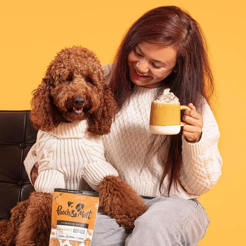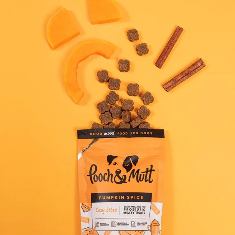 تشویقی سگ بدون غلات pooch&mutt دارای کدتنبل که باعث تقویت سیستم ایمنی می گردد و دارچین که خاصیت ضد التهابی دارد و سرشار از کلاژن که برای سلامت پوست ضروری است و عصاره ملون که سرشار از آنتی اکسیدان می باشد و پروبیوتیک که باعث سلامت دستگاه گوارش می گردد.