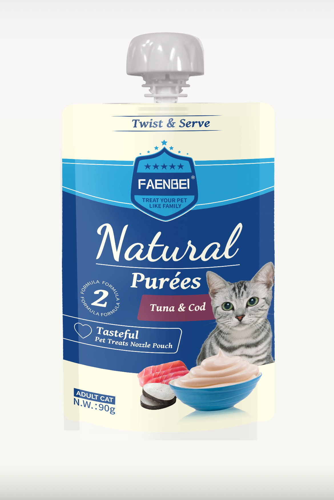 پودینگ گربه فنبی ماهی تن و کاد ۹۰ گرم Faenbei Natural purees