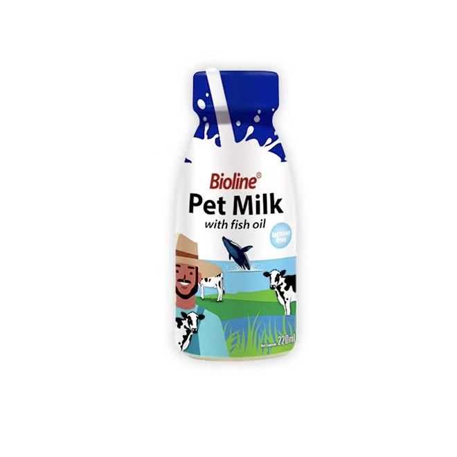 شیر گربه و سگ بدون لاکتوز با روغت ماهی بایولاین ۲۲۰ میل Bioline pet milk lactose free