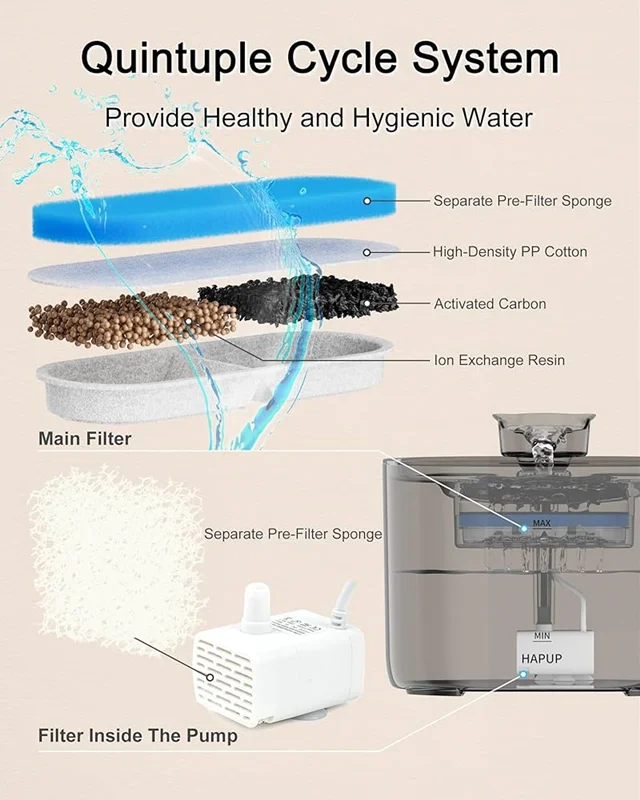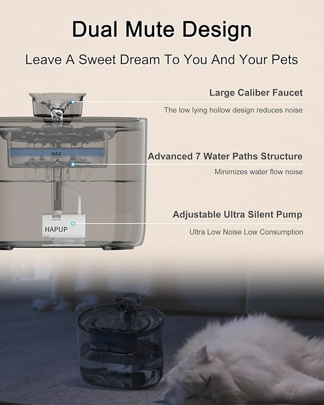 پمپ آب کاملا بی صدا دارد که هیچ خللی در آرامش شما و پت عزیزتان ایجاد نمی کند.