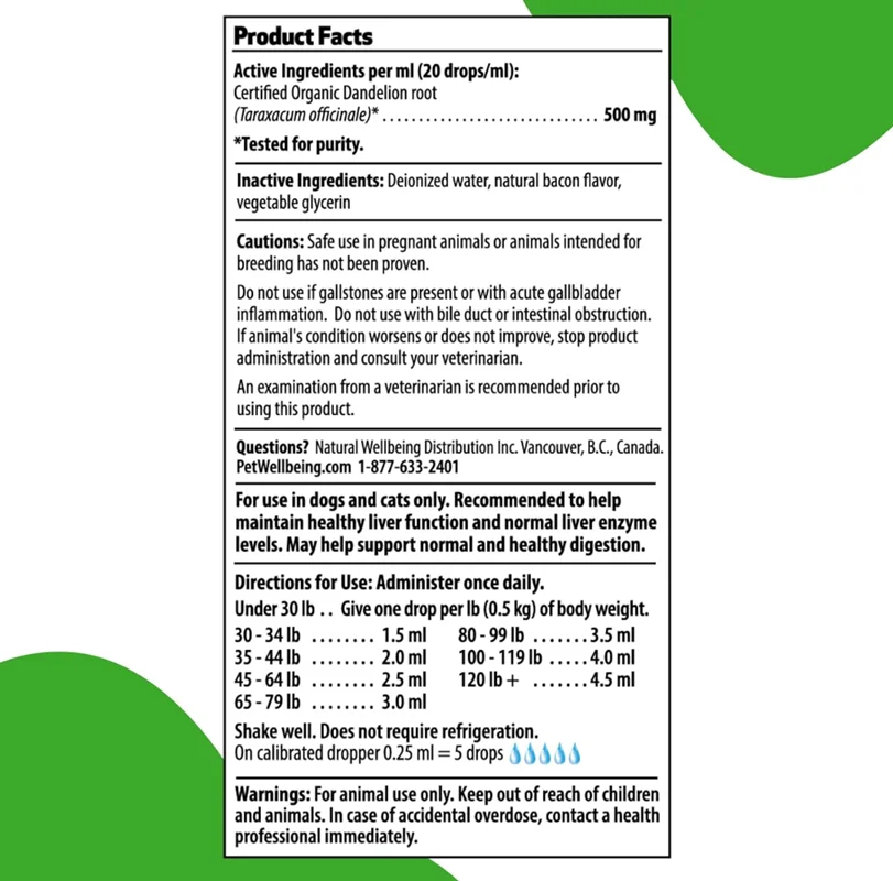 مکمل ریشه قاصدک گربه و سگ پت ولبیینگ ۵۹ میل Pet Wellbeing Dandelion Root