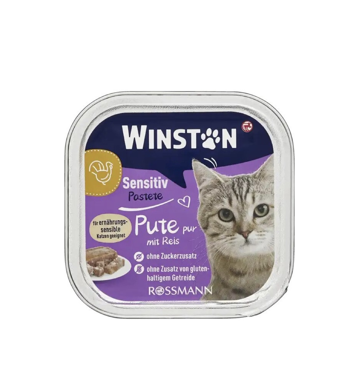 ووم گربه سنسیتیو وینستون پته گوشت بوقلمون و برنج ۱۰۰ گرم Winston