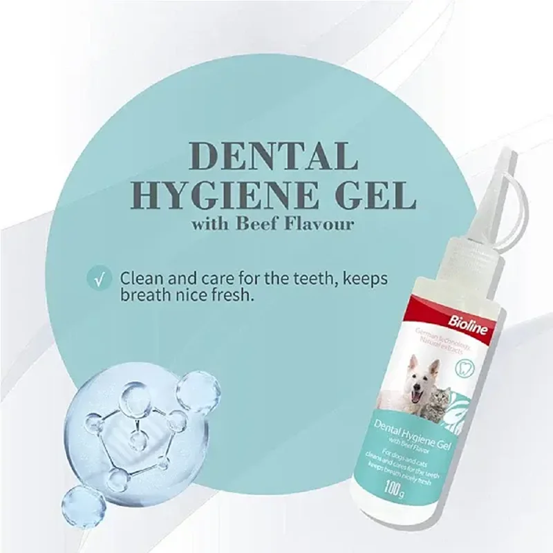 ژل بهداشتی دندان Bioline با طعم گوشت گاو، یک محصول تخصصی برای تمیز کردن دندانهای سگها و گربههاست که با بهرهگیری از تکنولوژی آلمان و عصارههای طبیعی طراحی شده است.