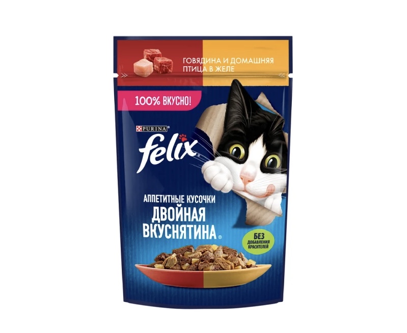 پوچ گربه فلیکس مرغ و بیف در ژله ۷۵ گرم