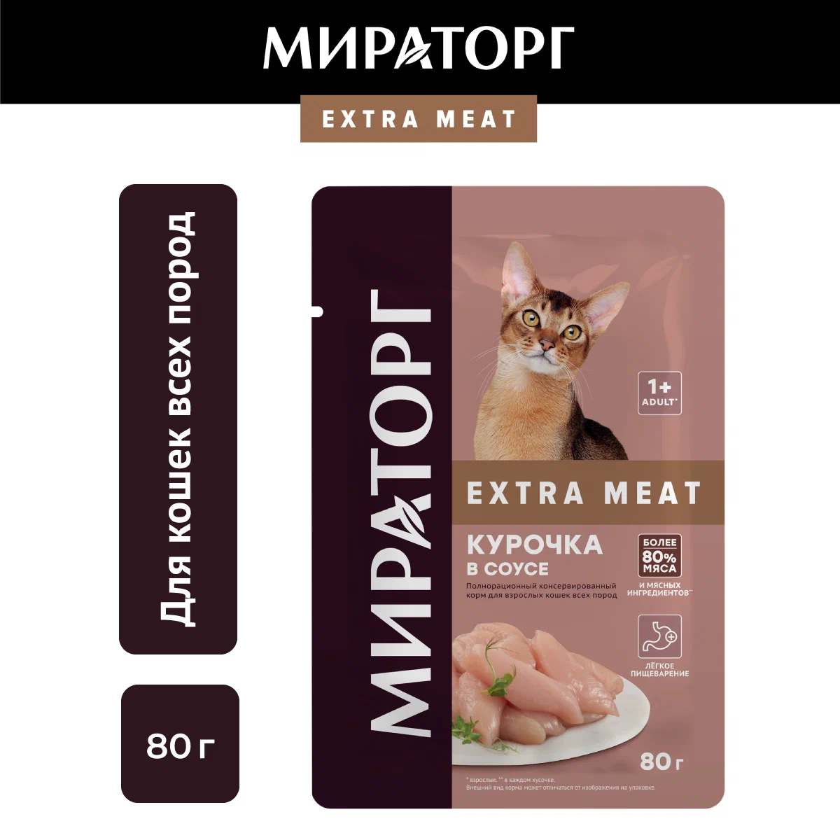 پوچ گربه هضم آسان گوشت مرغ میراتورگ ۸۰ گرم МИРАТОРГ