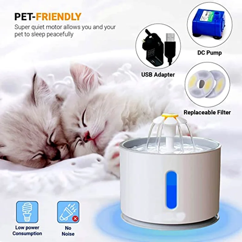 آبخوری اتوماتیک حیوانات با ظرفیت ۲.۴ لیتر و دارای سه مدل خروجی آب به صورت آبشاری و حبابی و ساده می باشد که این آبخوری را برای سگ ها و گربه ها جذاب کرده است مخصوصا برای گربه ها که اغلب دچار مشکلات کلیوی و ادراری هستند و اغلب تمایلی به آب خوردن ندارند ولی با استفاده از این آبخوری جذب و تحریک به آشامیدن آب شده و از دهیدراته شدن بدنشان جلوگیری می شود. این آبخوری به خصوص مناسب پت هایی که عاشق خوردن آب از شیر آب و آب های روان هستند می باشد.