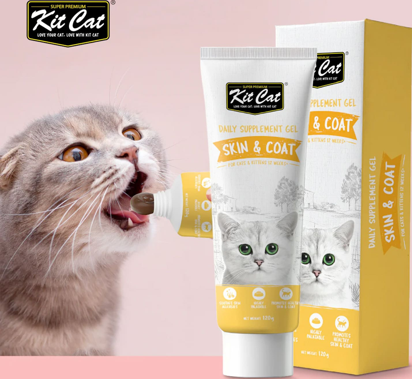 مکمل تقویت پوست و مو گربه کیت کت ۱۲۰ گرم Kit cat daily supplement gel skin & coat