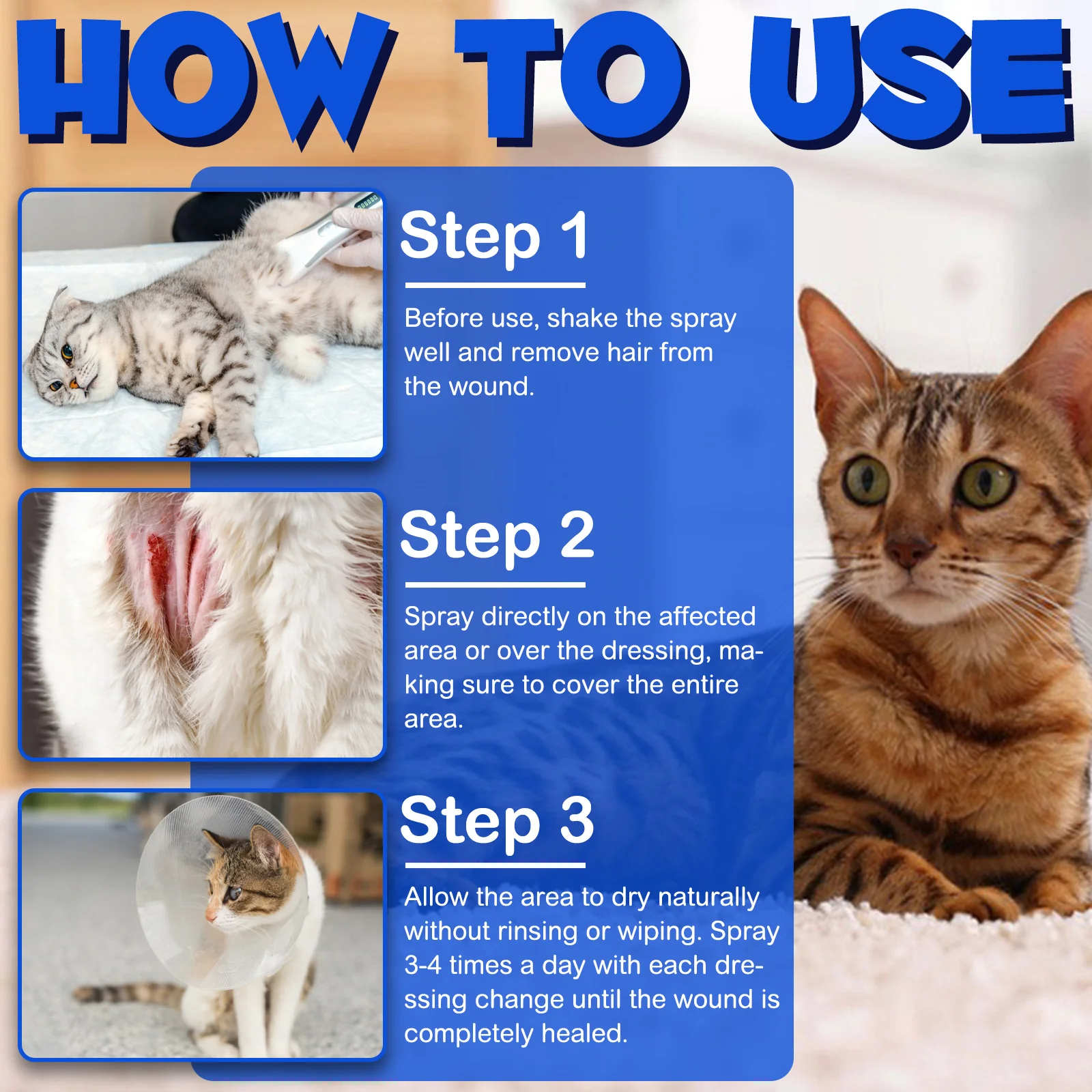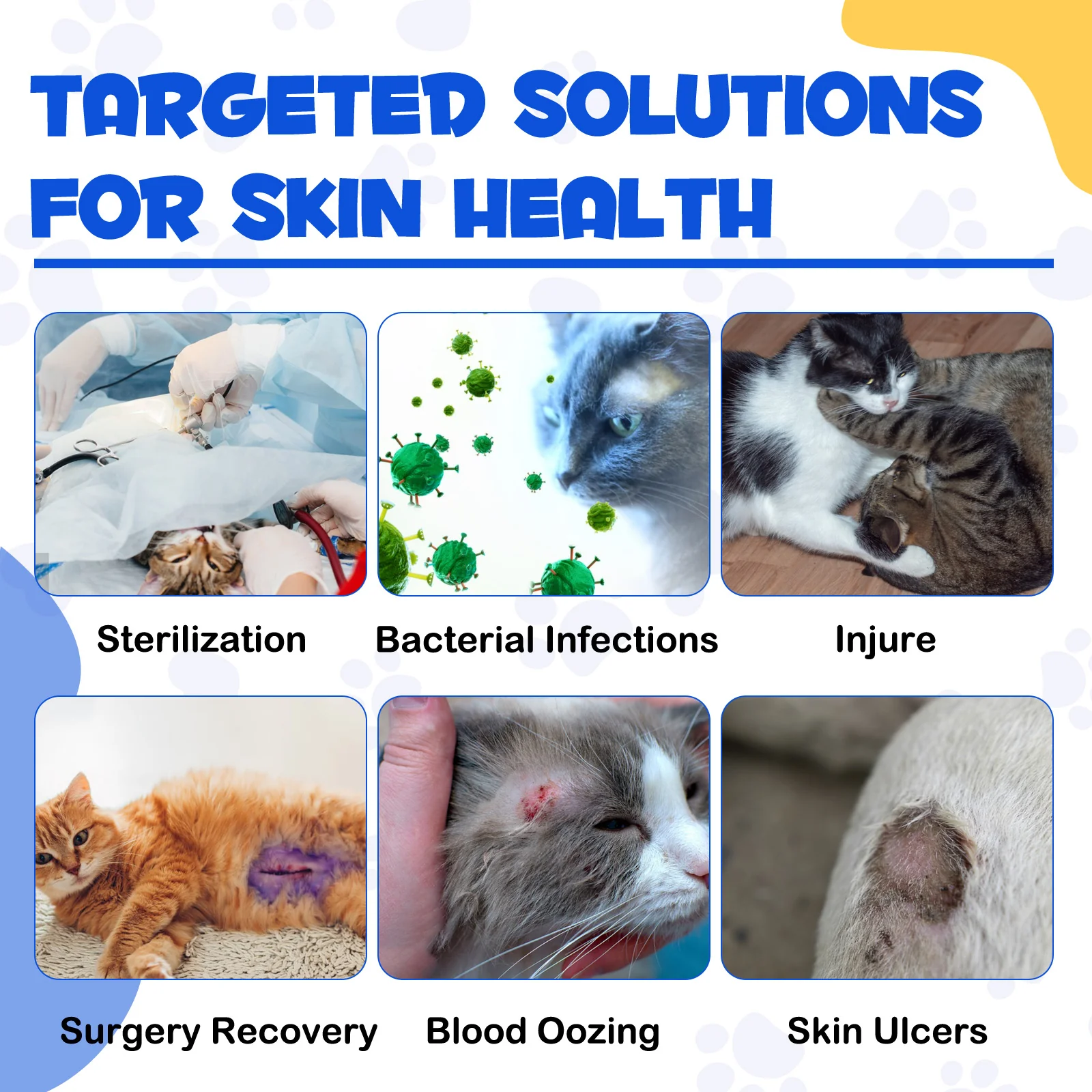 این محصول باعث تسریع روند بهبودی زخم‌ها می‌شود. هیدروژل موجود در فرمولاسیون، یک لایه مرطوب روی زخم‌ها ایجاد کرده و به آن‌ها کمک می‌کند تا به‌سرعت و با کمترین آسیب به بافت‌های اطراف بهبود یابند. این ویژگی باعث می‌شود که حیوان خانگی شما سریع‌تر از مشکلات پوستی رهایی یابد و زخم‌ها با کمترین احتمال عفونت ترمیم شوند.