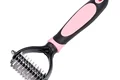 شانه دو طرفه گربه باز کن با تیغه استیل درجه یک که به دلیل سر گرد آن هیچ آسیبی به پوست وارد نمی کند و دسته ی ضد لغزش و مستحکم مناسب گربه و سگ های پشمالو.
