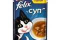 پوچ فلیکس، مدل سوپ به شکل مایع غلیظ و فوق العاده خوشمزه همراه با تکه های طعم دار شده با سس سوپ که می توانید به عنوان میان وعده و یا طعم دار کردن غذای خشک و یا تر برای گربه های بدغذا و تحریک به خوردن غذا و یا به عنوان اضافه کردن مایعات به همراه غذا تا نیاز مصرف مایعات روزانه شان برطرف گردد استفاده کنید.