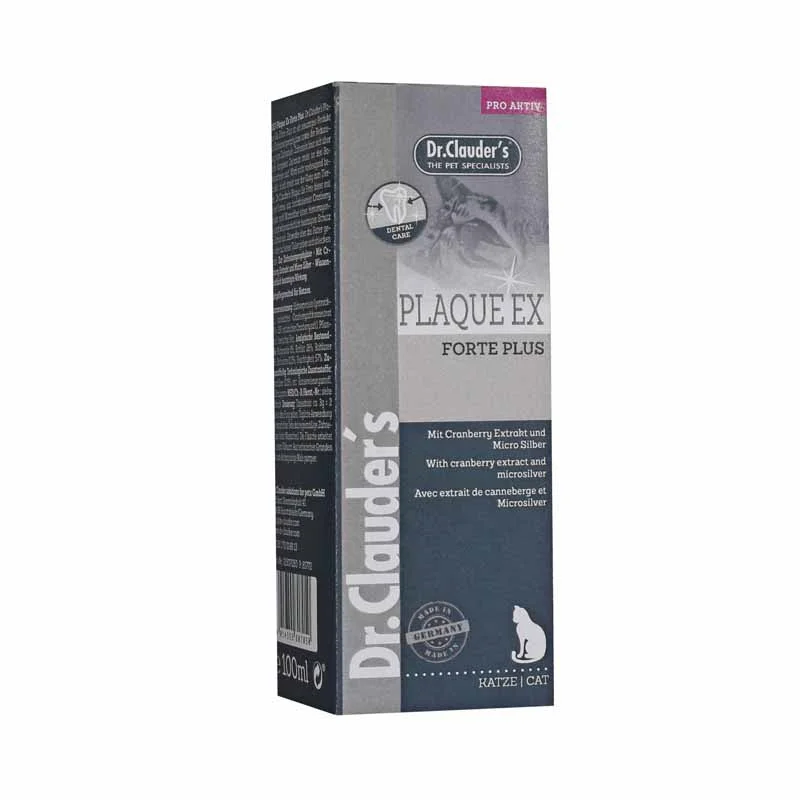استفاده از سرم ضد جرم و پلاک دندان دکتر کلاودرز (Dr.Clauder's Plaque EX) یکی از بهترین و مطمئن ترینراه ها برای جلوگیری از جرم و پلاک دندانی در گربه ها می باشد. این سرم با دارا بودن ذرات میکروسیلور باعث ضدعفونی کردن و تمیز کردن دندان و دهان گربه های دلبند شما می شود و از ایجاد و ابتلای بیماری های دهانی و دندانی جلوگیری می کند.